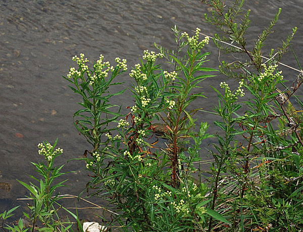 | 近くの川ではタコノアシが生えている。この川はここ数年河川改修工事が続いている。タコノアシは絶滅危惧種Aランクである。改修が続く川ではほかの草木も少なくタコノアシも生きていけるのかなぁ。と思う。ところがこの川でタコノアシは元気に育ち増えている。タコノアシは他の植物との競争には弱い。だから改修が進むこの川には他の草木が少ないからタコノアシには都合がよい。もちろんこの川の改修には神戸市は保全のために考えた改修をしてくれていることもタコノアシが生育している大きな原因の一つである。クリックすると「タコノアシ」「タコノアシの一生」「絶滅危惧種」のページへ |
